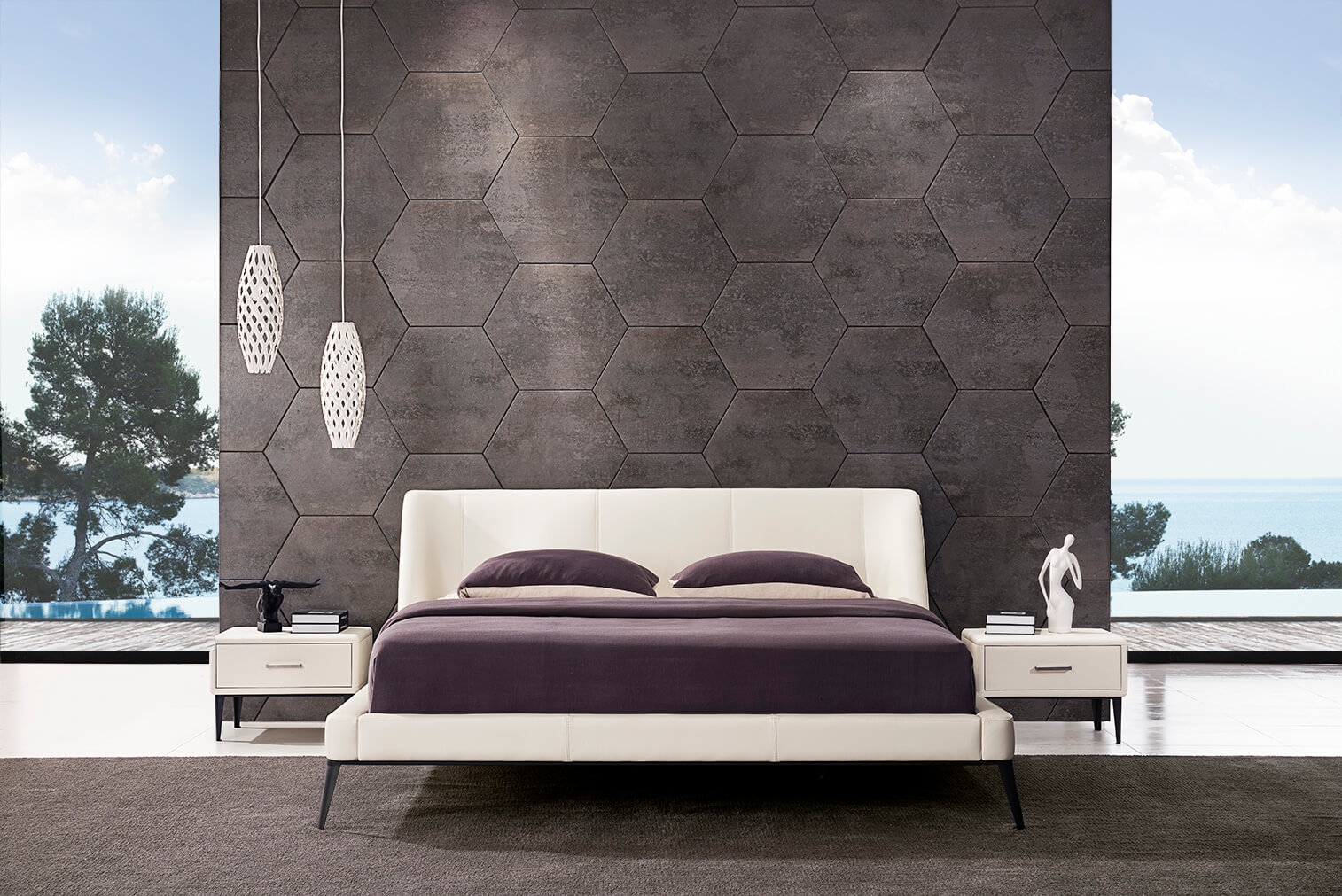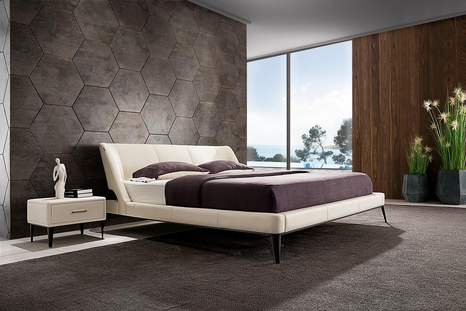 Moderná kožená manželská posteľ 28 v elegantnom dizajne.