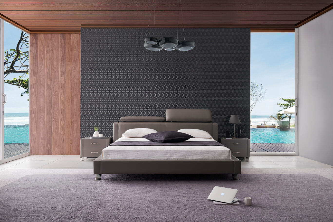Moderná kožená manželská posteľ 29 so sklopnými záhlavnými opierkami.