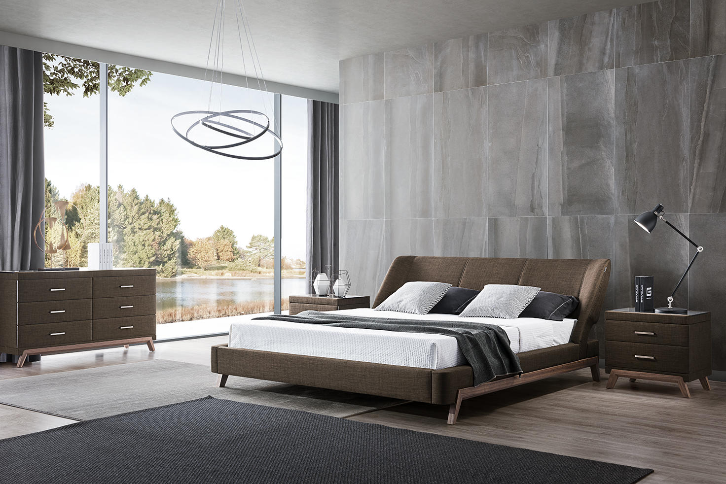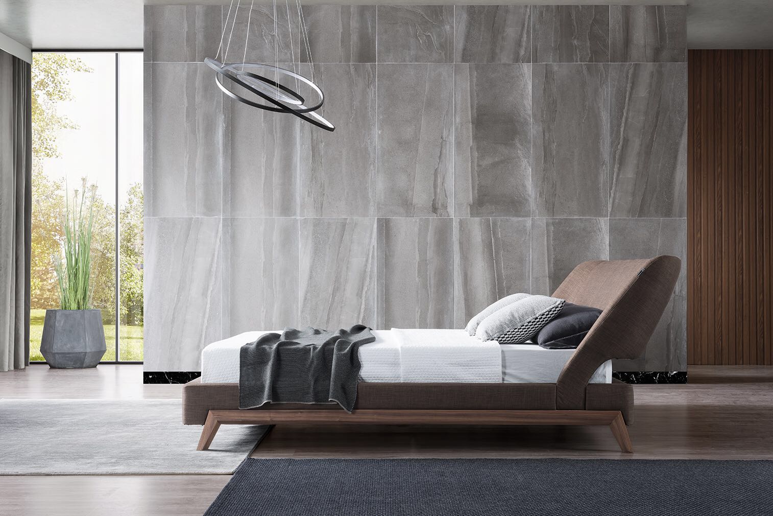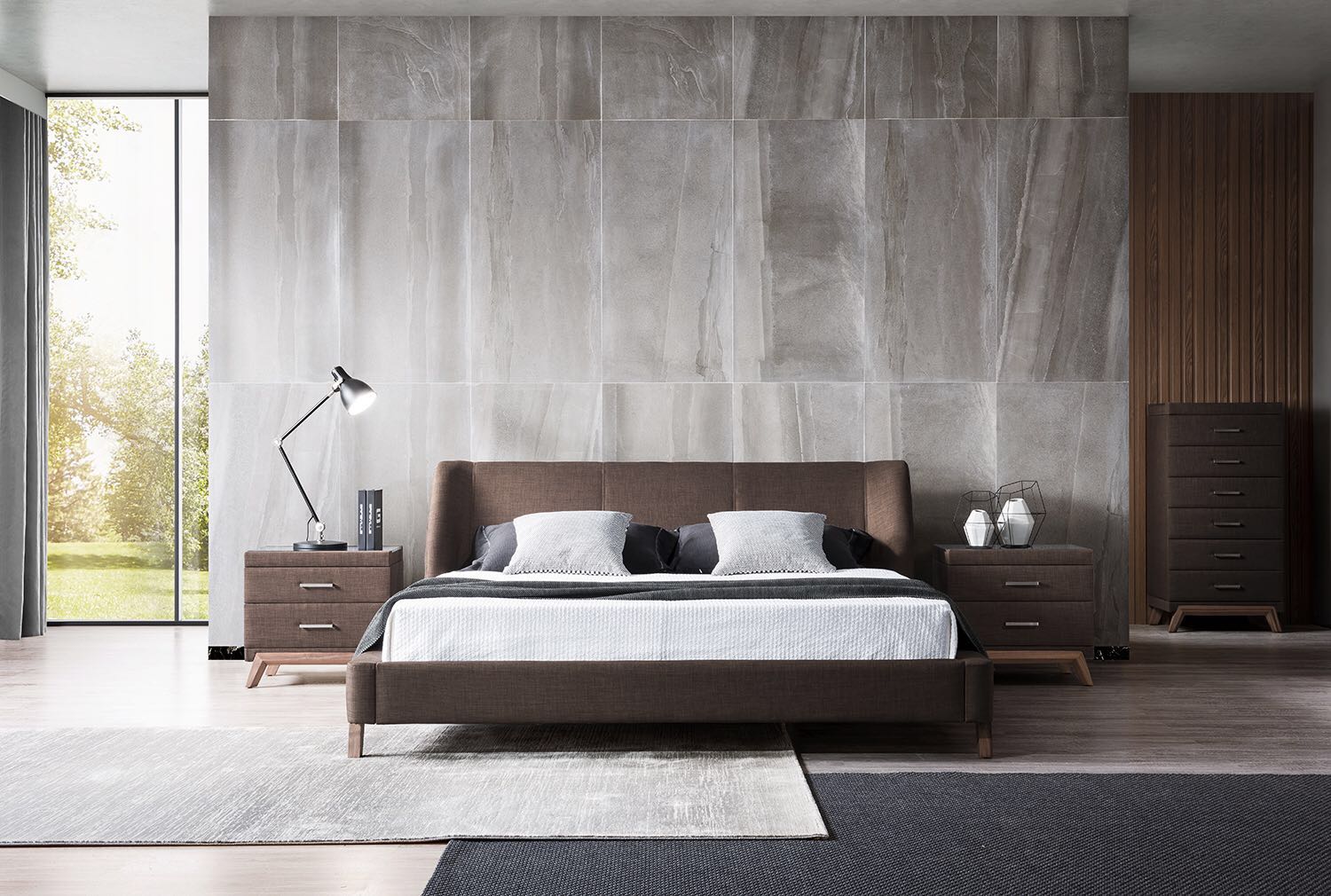 Moderná čalúnená manželská posteľ 04 v elegantnom dizajne.