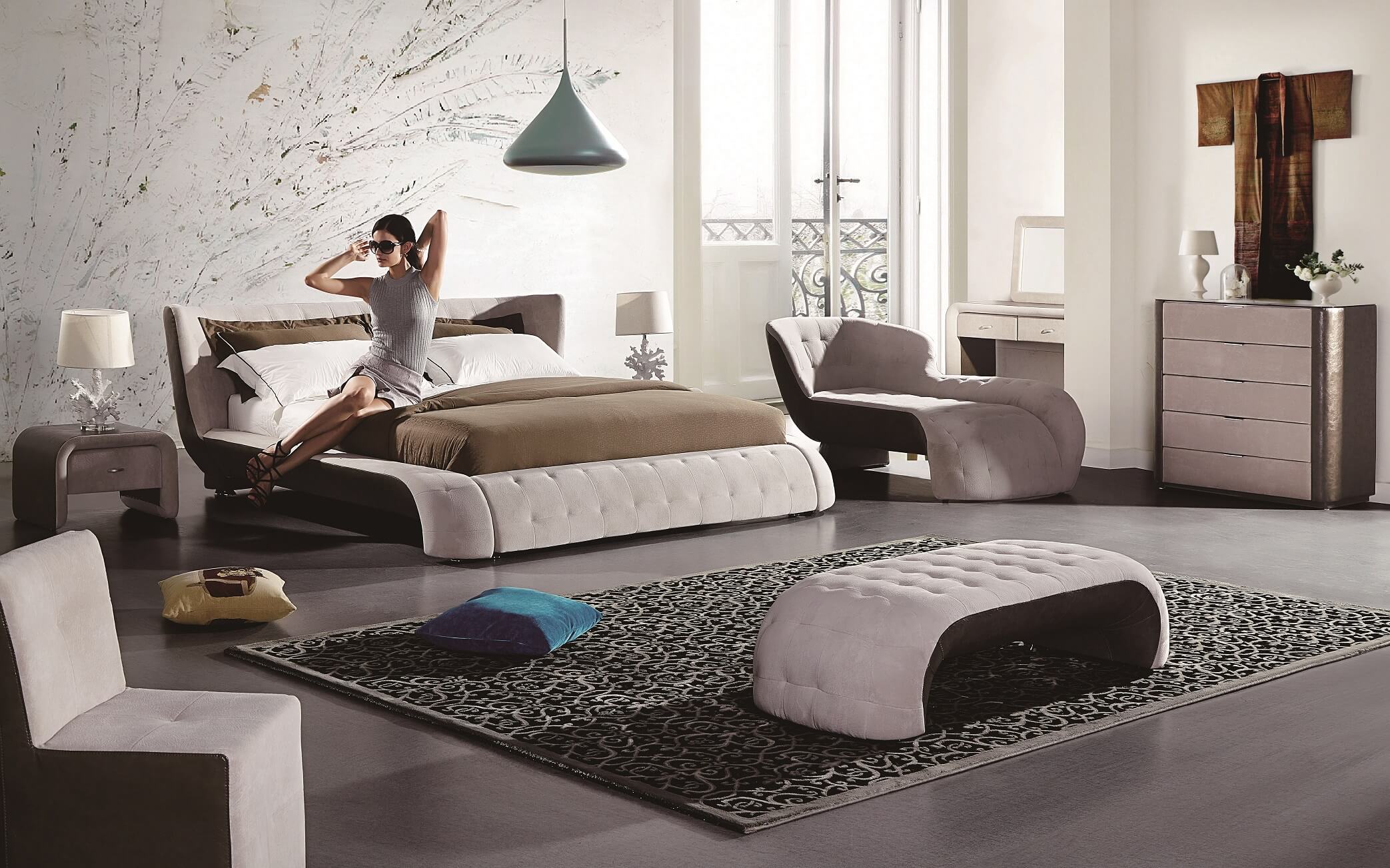 Moderná čalúnená manželská posteľ 14 v modernom dizajne.