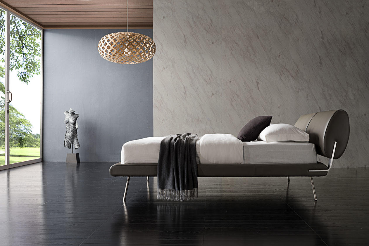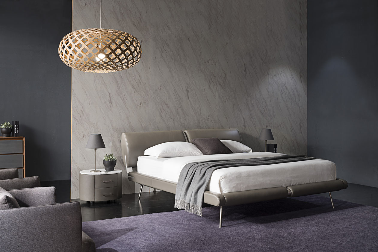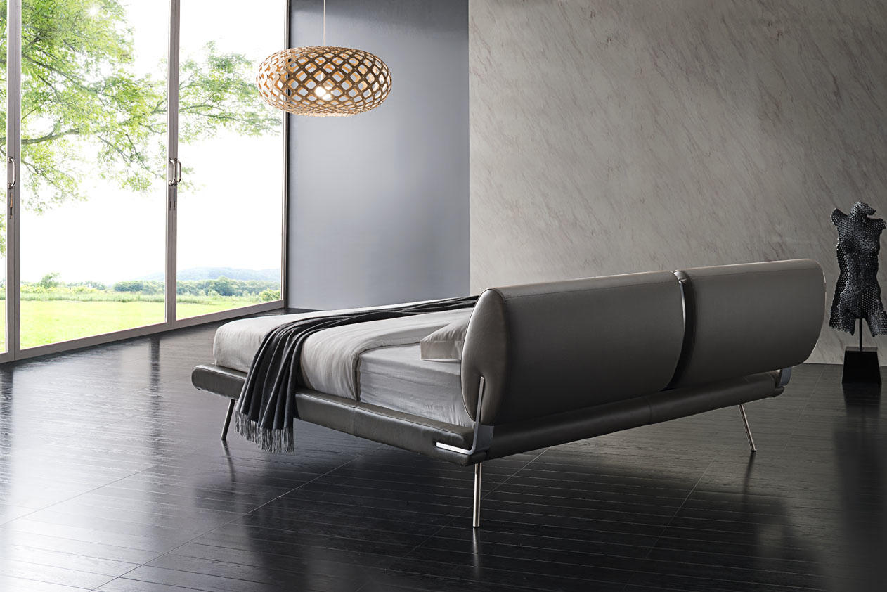 Moderná kožená manželská posteľ 23 v elegantnom dizajne.