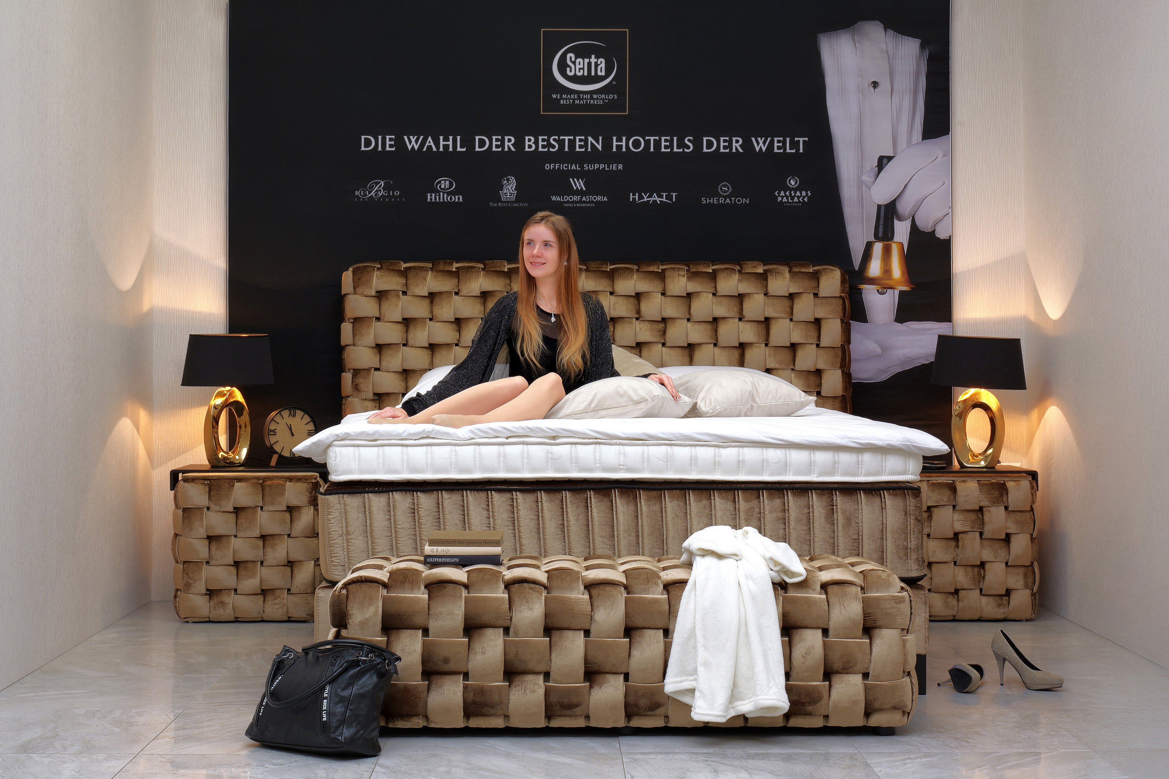 Luxusná manželská posteľ prestížnej značky SERTA. Postele tejto značky sú dokonalou voľbou ak hľadáte spojenie exkluzívneho dizajnu a komfortu. Každý model zahŕňa aj prémiový matrac, kt. je navrhnutý tak, aby Vašej chrbtici doprial dokonalú oporu a oddych - hmotnosť tela je rovnomerne rozložená na ploche matraca. Tieto postele sú už desaťročia výberom popredných svetových hotelov ako Hilton, Marriot, Crown Plaza a i.