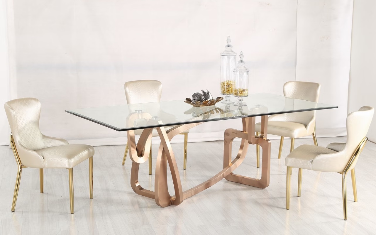 Jedálenský stôl so sklom prípadne s mramorom a s nerezovým podstavcom DREEM, dodá Vašej kuchyni nádych luxusu a elegancie. Pevné materiály zabezpečia dlhú životnosť a bezpečné užívanie jedálenského stola.