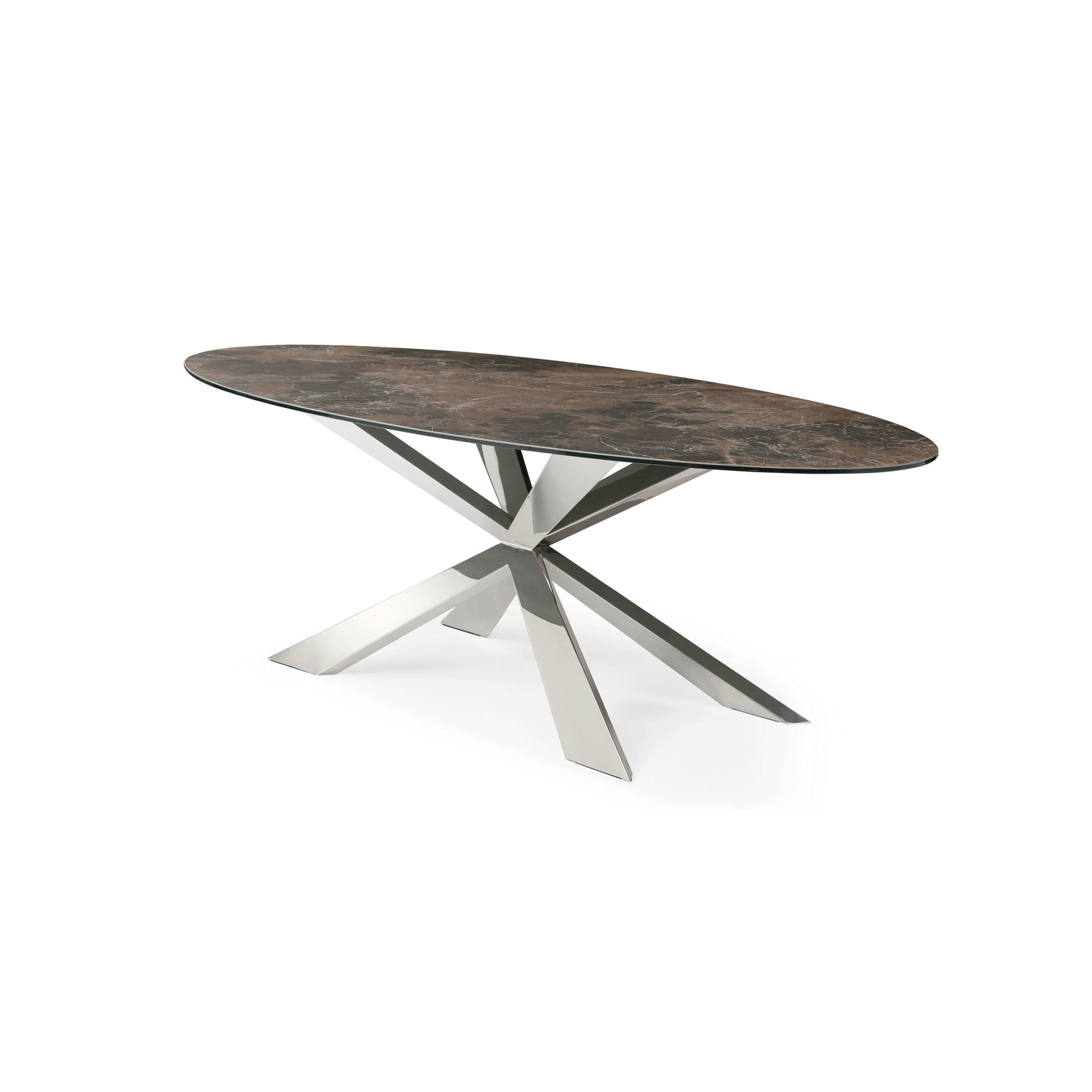 Luxusný jedálenský stôl DEBI vyrobený z kovu a španielskej keramiky. Stôl je veľmi pevný a elegantný s nadčasovým dizajnom. Pevné materiály zabezpečia dlhú životnosť a bezpečné užívanie jedálenského stola. Španielska keramika je nepoškriabateľná.