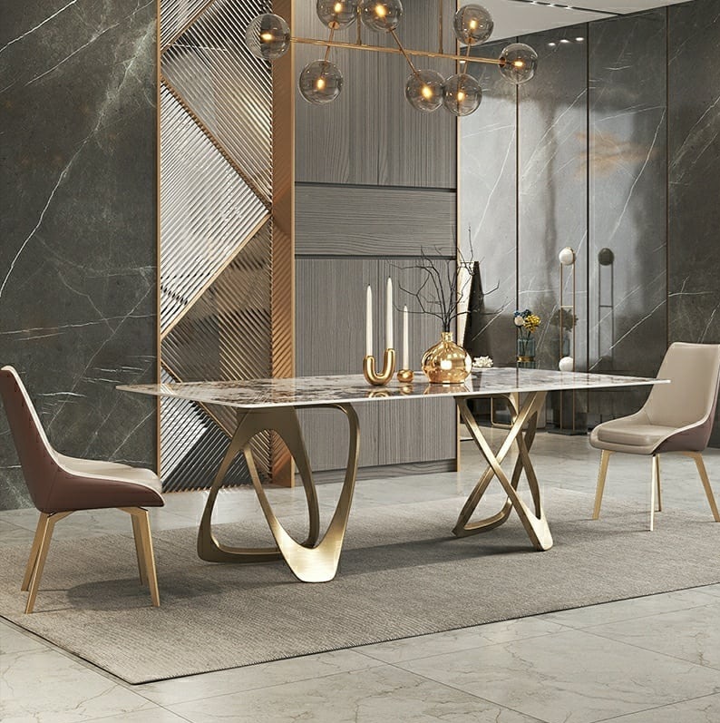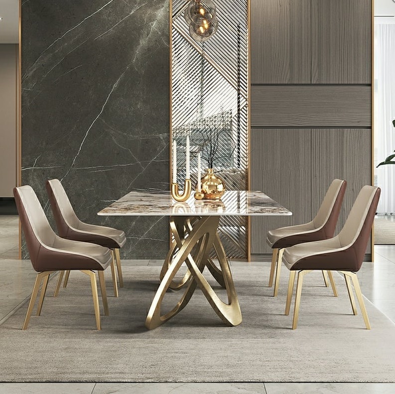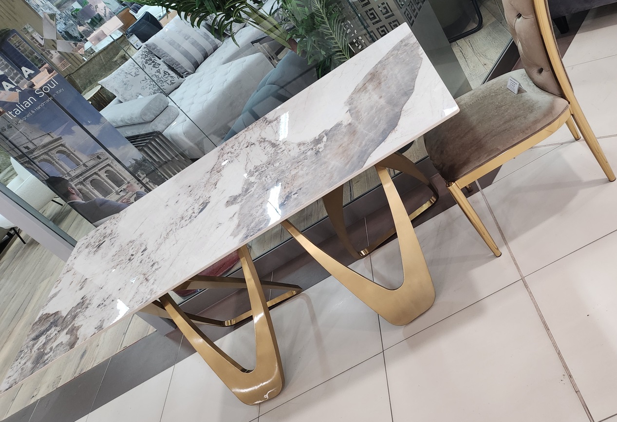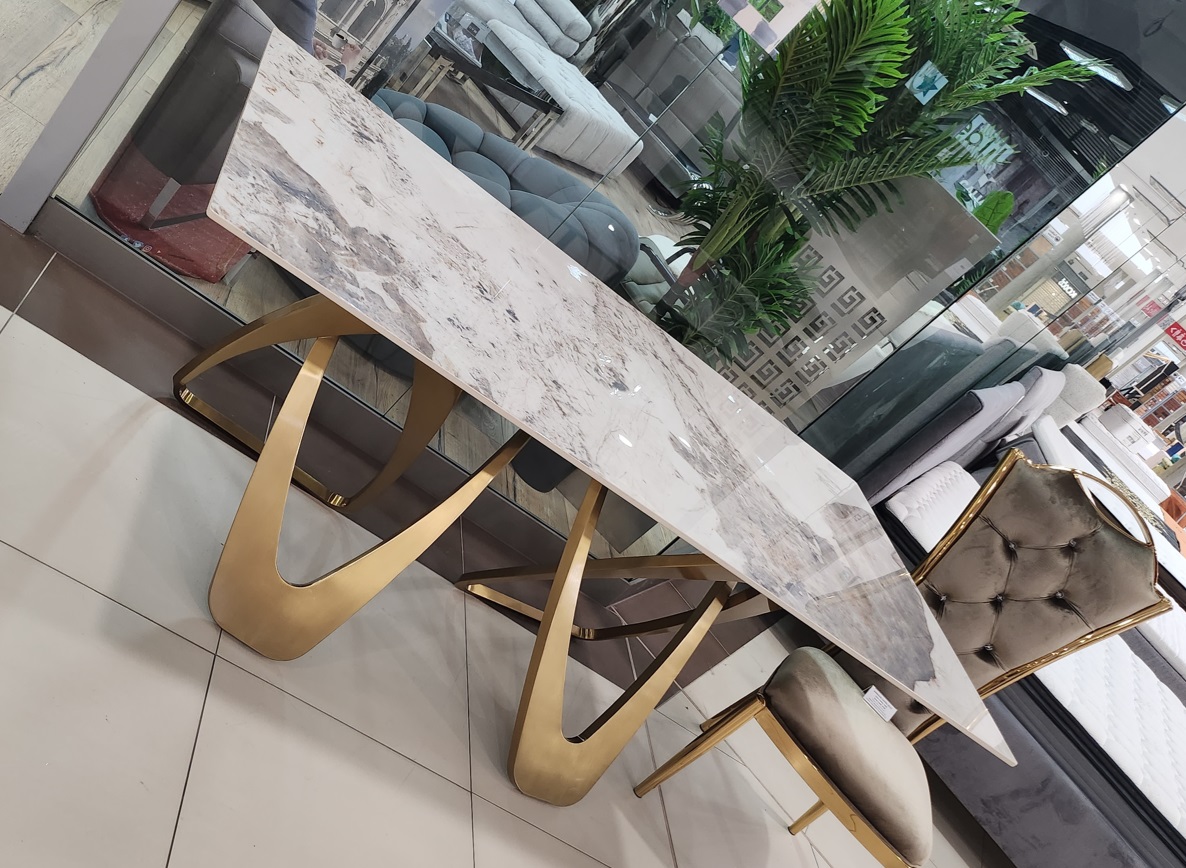 Luxusný jedálenský stôl MATEO s dizajnovou nohou bude vo Vašom interiéri neprehliadnuteľnou dominantou. Na ilustračnej foto je doska stola v keramickom prevedení. Vrchnú dosku možno vyhotoviť aj v prevedení so sintrovaným kameňom - sintrovaný kameň má veľa výhod, je extrémne odolný voči poškriabaniu, vysokým teplotám, chemikáliám a UV žiareniu, je odolný voči škvrnám a má prakticky nulovú absorpciu vďaka pórovitosti takmer 0%.