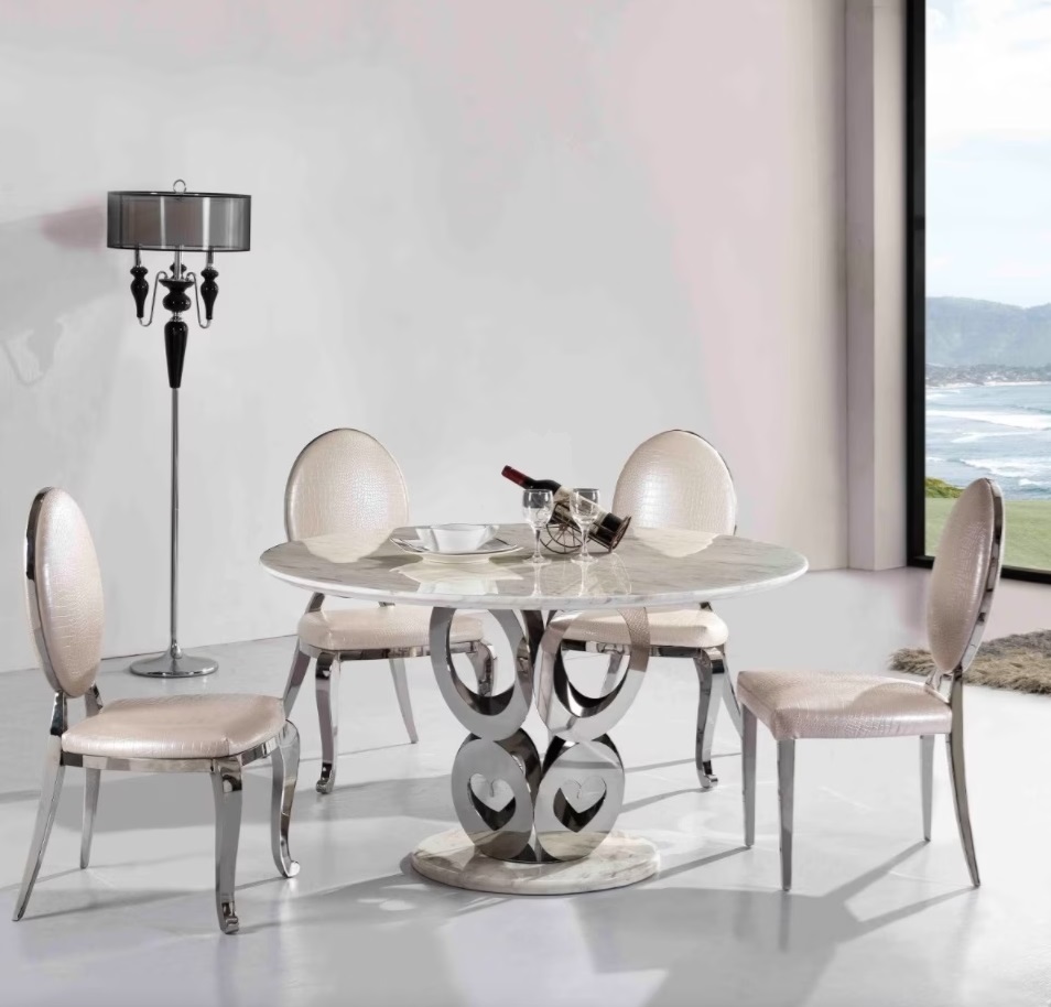Okrúhly mramorový jedálenský stôl GRAFF s nerezovým podstavcom - do Vašej luxusnej kuchyne ako stvorený.