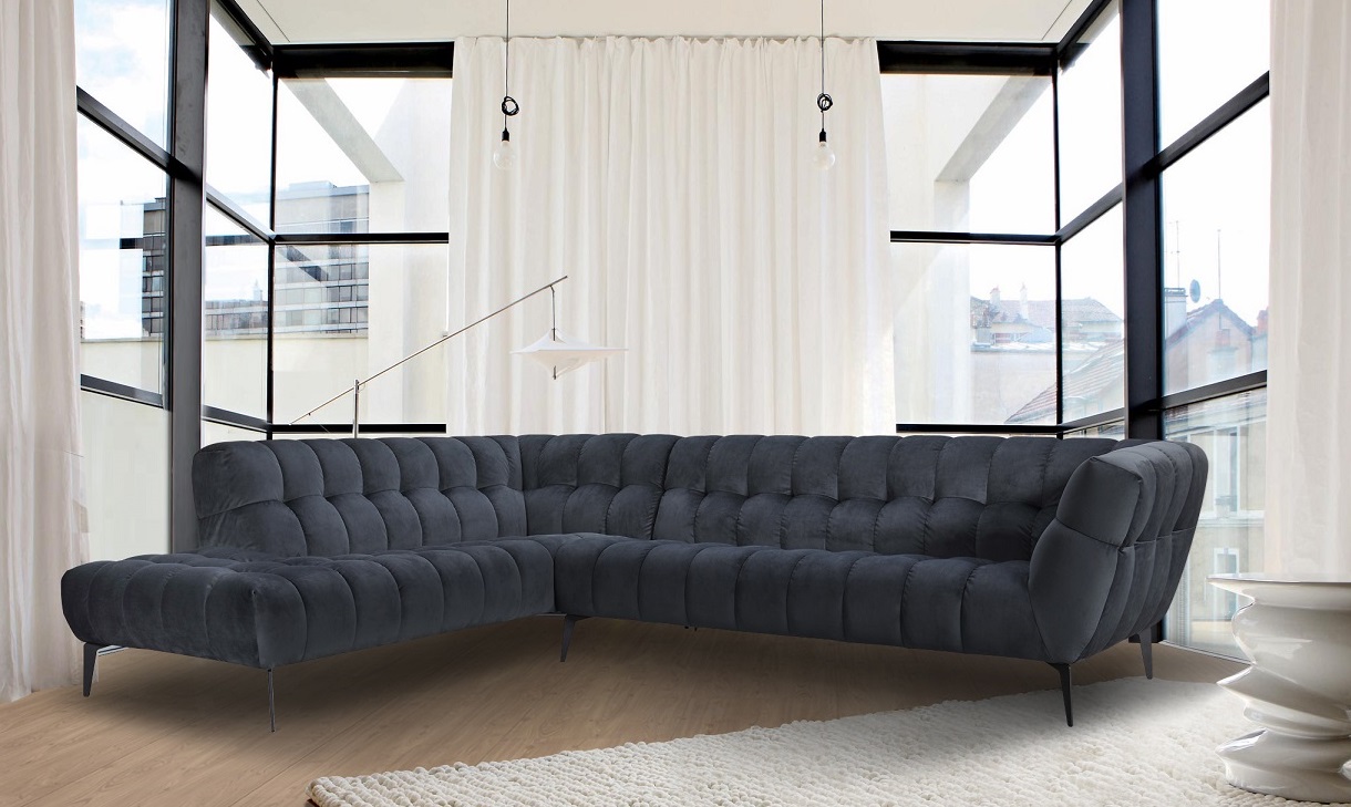 Elegantná látková sedačka ZARA v rohovom prevedení. Jednoduchý a čistý prešívaný dizajn sedacej súpravy upúta na prvý pohľad. Sedačka vďaka vyšším kovovým nohám pôsobí veľmi vzdušne a prakticky. K sedačke je možné doobjednať aj praktický taburet.