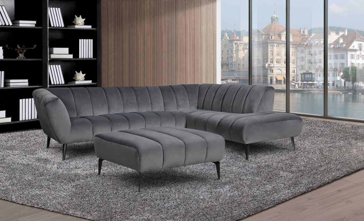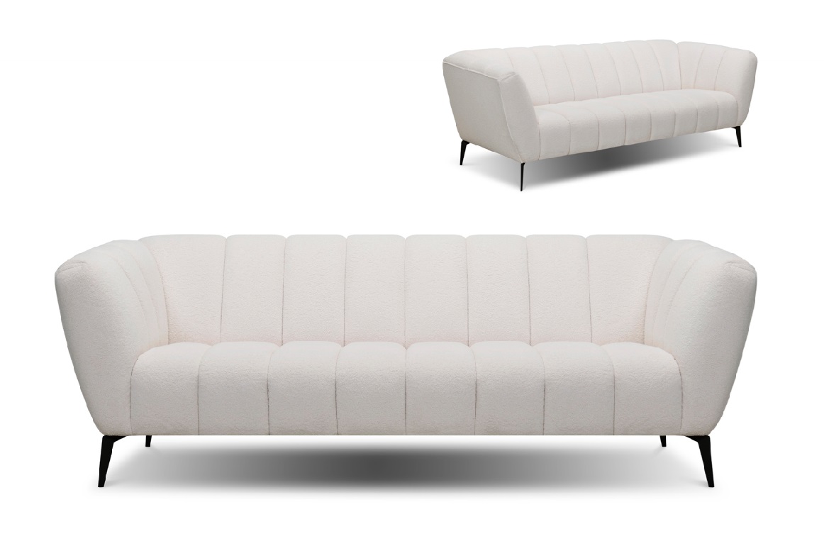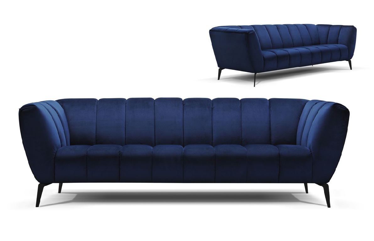 Elegantná sedačka ZOJA. Jednoduchý a čistý pozdĺžne prešívaný dizajn sedacej súpravy upúta na prvý pohľad. Sedačka vďaka vyšším kovovým nohám pôsobí veľmi vzdušne a prakticky.