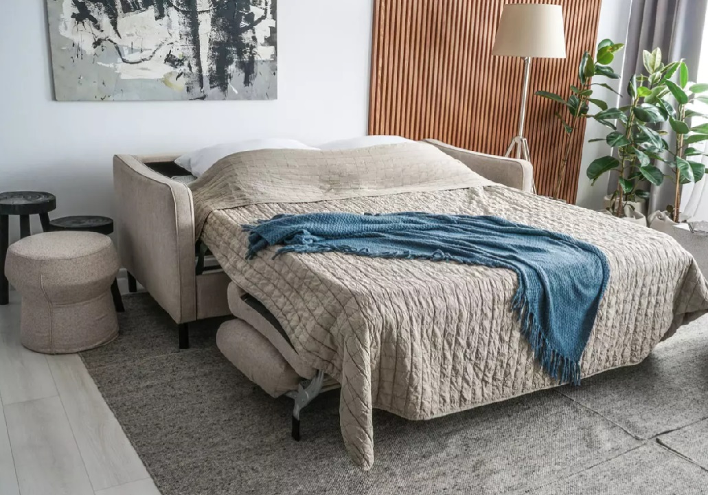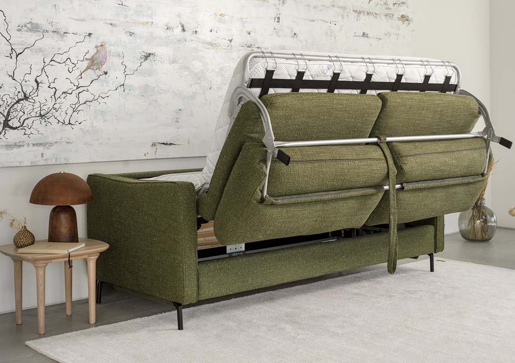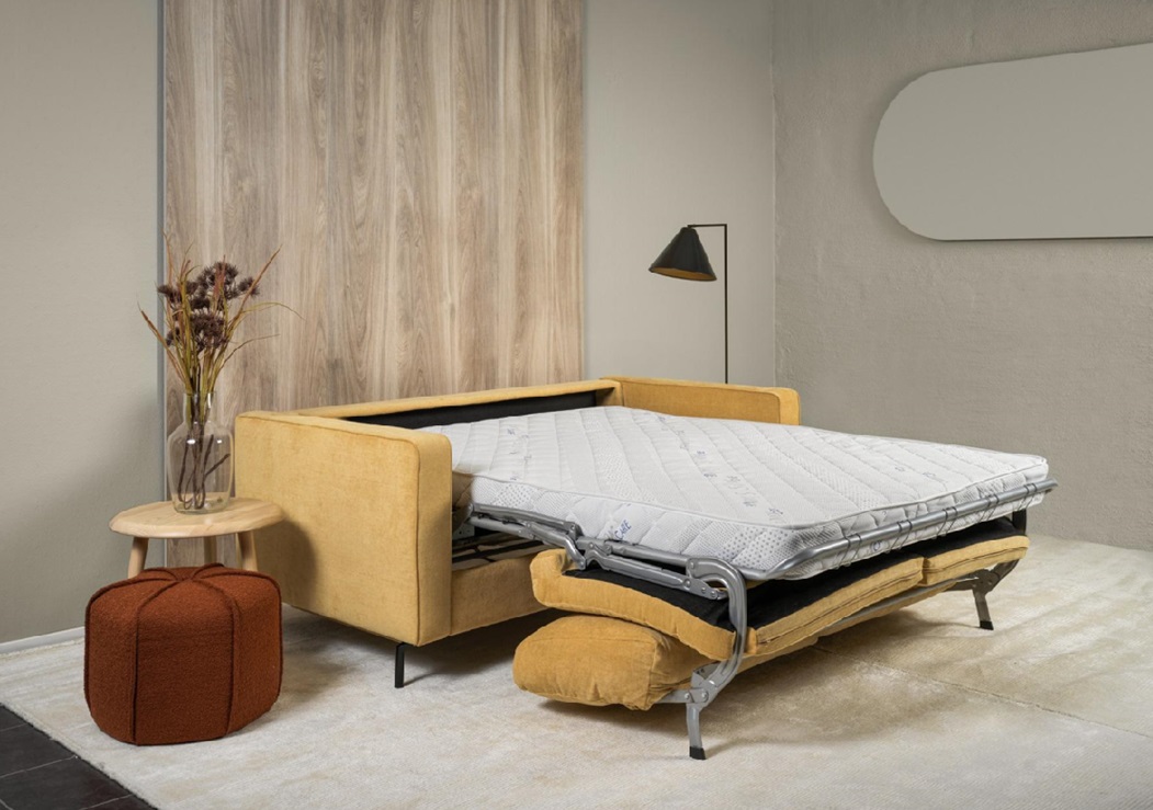 Rozkladacia sedačka SLEEPY značky Furninova je univerzálny kus nábytku, ktorý dobre poslúži v každom byte. Vybavený ľahko zložiteľným rámom vrátane penového matraca. Plocha na spanie a matrac sú ukryté vo vnútri, takže na jeho rozloženie na spanie stačia tri jednoduché pohyby. Široký sedák je mäkký a pohodlný, pretože je vyplnený kvalitnou, vysoko elastickou penou, ktorá zaručuje väčšiu pružnosť a väčšiu odolnosť proti deformácii.