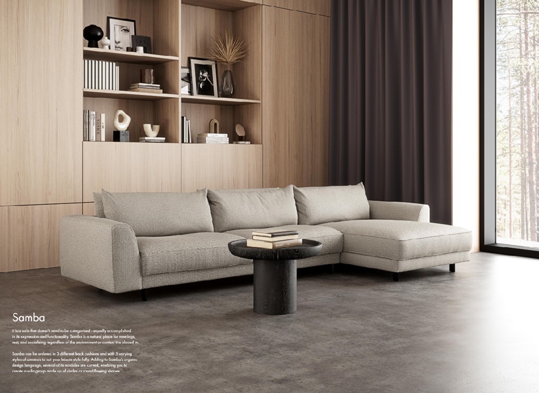 SAMBA je sedačka tisícich tvári, ktorú rozhodne netreba zaraďovať do kategórií – rovnako dokonalá vo svojom výraze a funkčnosti. Prirodzeným miestom na stretnutia, odpočinok a socializáciu bez ohľadu na prostredie alebo kontext, v ktorom sa nachádza.