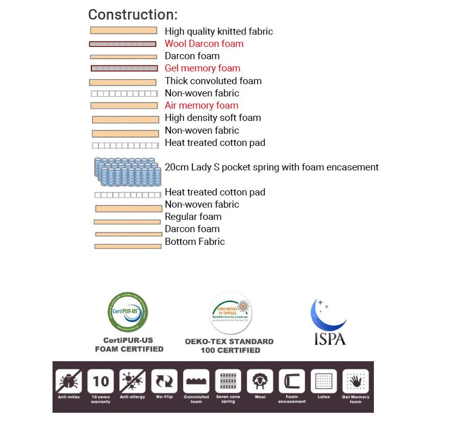 2. Gélová infúzna pena, objavte jedinečný odraz pocit  pri ležaní vďaka pamäťovému gélu vo vnútri. Aktívne reaguje na Vaše telo, keď spíte, takže sa prebudíte uvoľnený a plný energie.