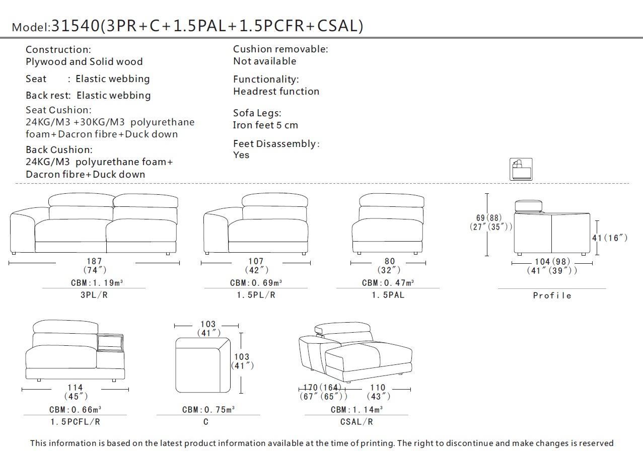 • úložný priestor v stolíku, môže byť medzi ľubovoľnými časťami sedačky