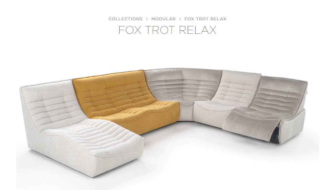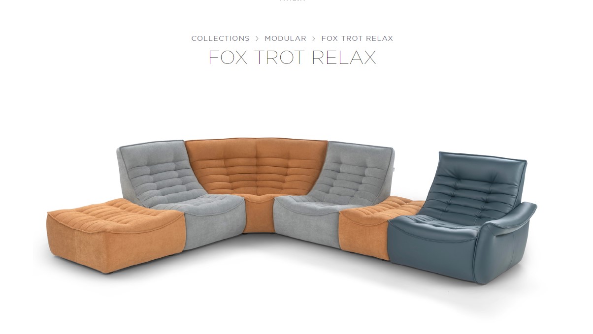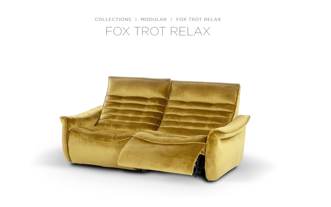 Nadčasová talianska sedačka FOX TROT RELAX vyrobená pre komfortné sedenie a vychutnanie si atmosféry domova. Modulárny koncept v modernom vzhľade pre Váš dokonalý pocit zo sedenia.