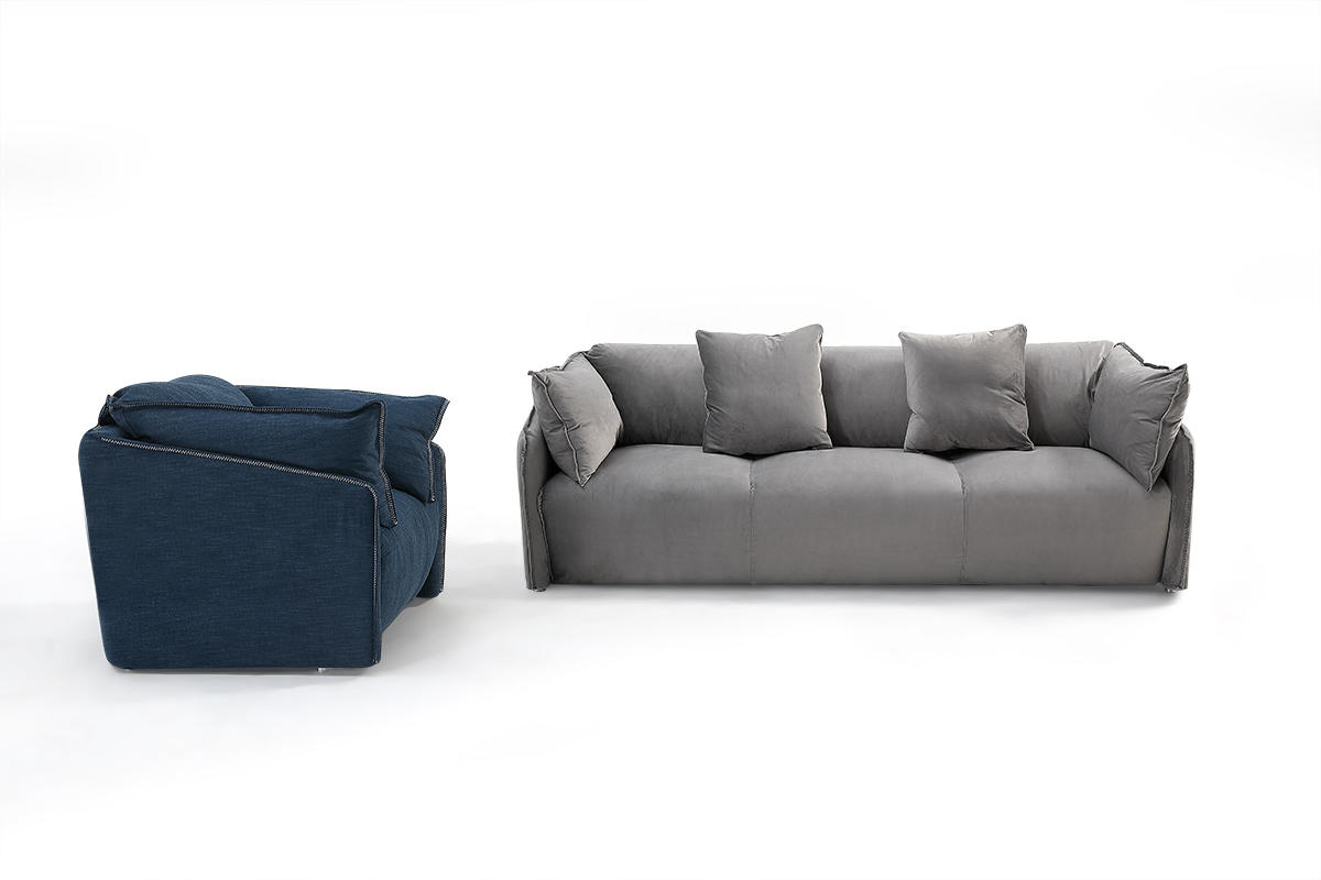 Dizajnová sektorová sedacia súprava CASABLANCA ponúka úzke bočné opierky a tým viac miesta na sedenie. Doplnená o vankúše pôsobí naozaj veľmi komfortne.