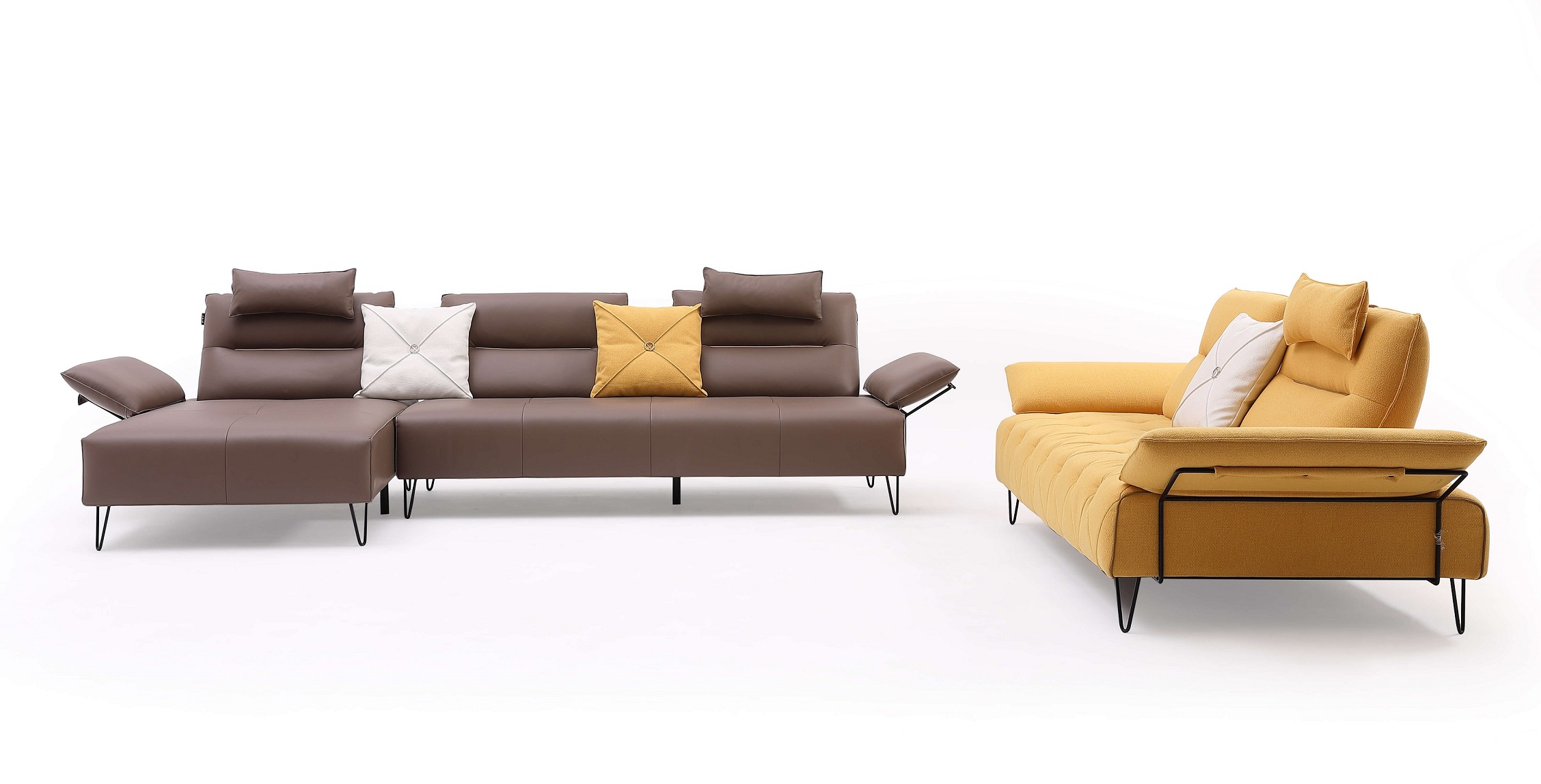 Elegantná sedacia súprava RIMINI v príjemnom dizajnemá industriálne kovové nožičky, ktoré jej dodávajú jedinečný vzhľad.
