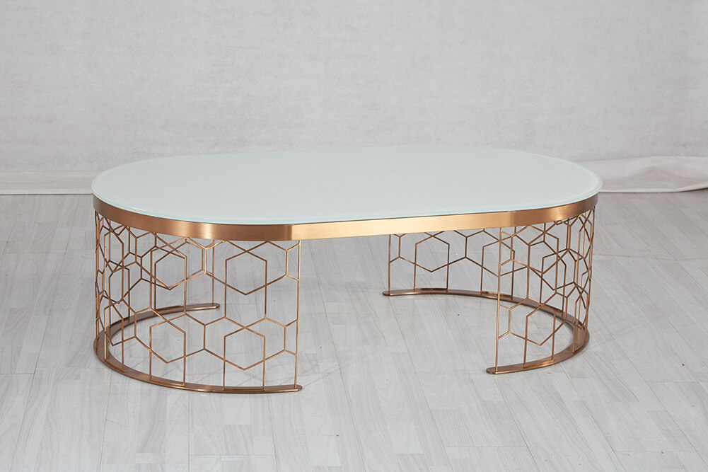 Luxusný konferenčný stolík CT810 so zaujímavo riešeným podstavcom z nereze.