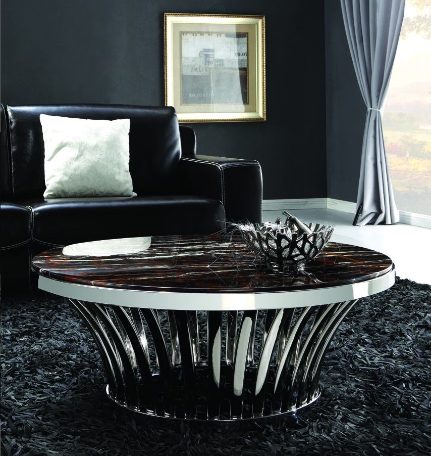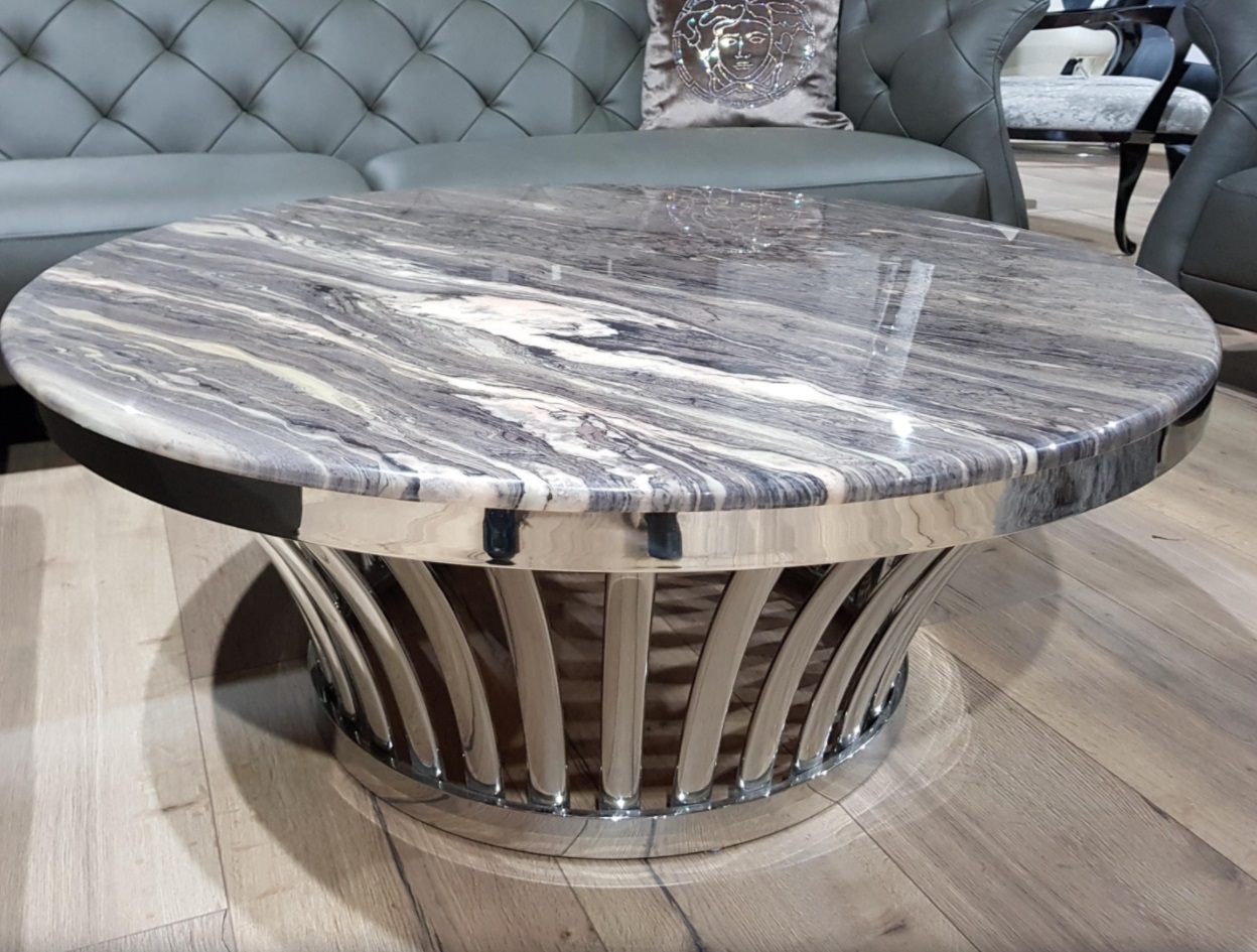 Konferenčný stolík CT568 s nohou z nereze pôsobí naozaj luxusne. Mramor je potiahnutý ochranným náterom, vďaka ktorému je mramor teplý a nenavsiakavý.