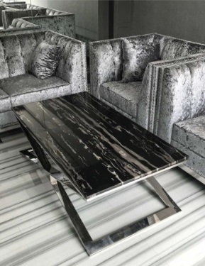 Luxusný konferenčný stolík CT570 s nerezovou nohou pôsobí naozaj luxusne. Mramor je potiahnutý ochranným náterom, vďaka ktorému je mramor teplý a nenavsiakavý. Tento stolík nestárne, vyzerá stále rovnako dobre v interiéri.