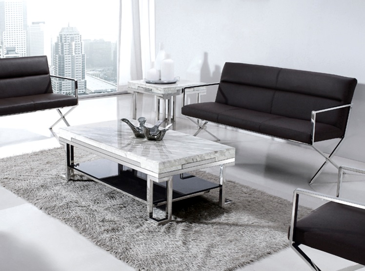 Dvojúrovňový konferenčný stolík CT915 s mramorovou doskou a nohami z nereze pôsobí naozaj luxusne. Mramor je potiahnutý ochranným náterom, vďaka ktorému je mramor teplý a nenavsiakavý. Tento stolík nestárne, vyzerá stále rovnako chic. Tieto typy stolíkov patria medzi zákazníkmi najčastejšie vyhľadávané.