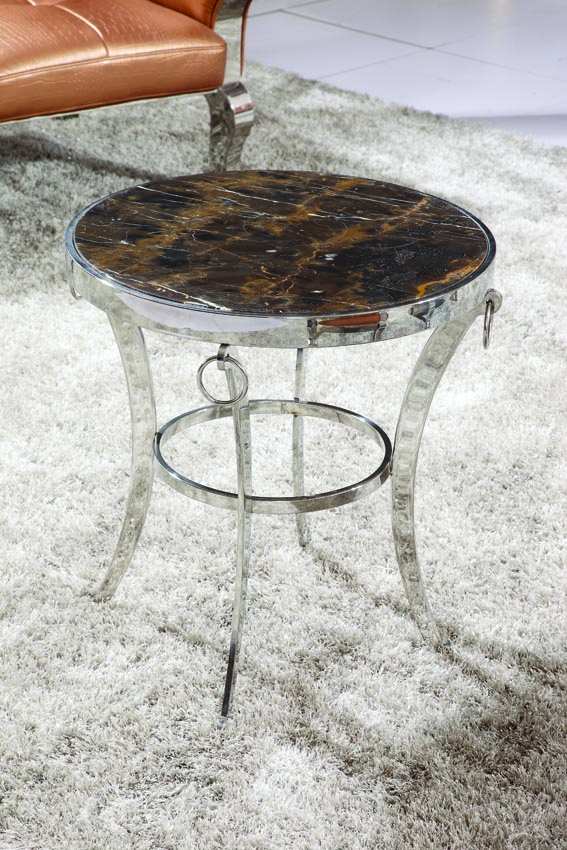 Príručný - konferenčný stolík CE563 s mramorovou doskou. Noha stolíku z nereze.