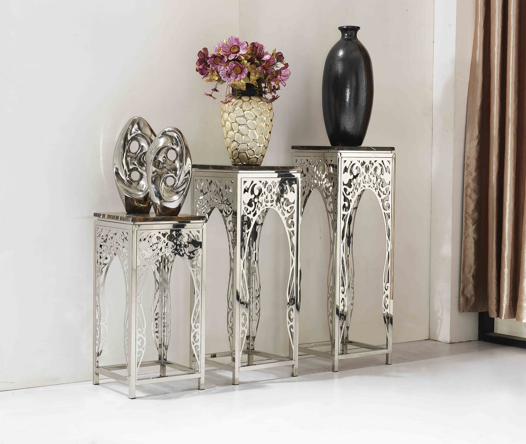 • nerezová noha stolíka: strieborná, brúsené striebro, zlatá, brúsené zlato, čierny chróm, ružové zlato, brúsené ružové zlato