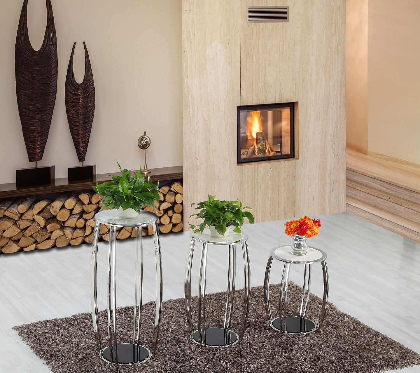 • nerezová noha stolíka: strieborná, brúsené striebro, zlatá, brúsené zlato, čierny chróm, ružové zlato, brúsené ružové zlato