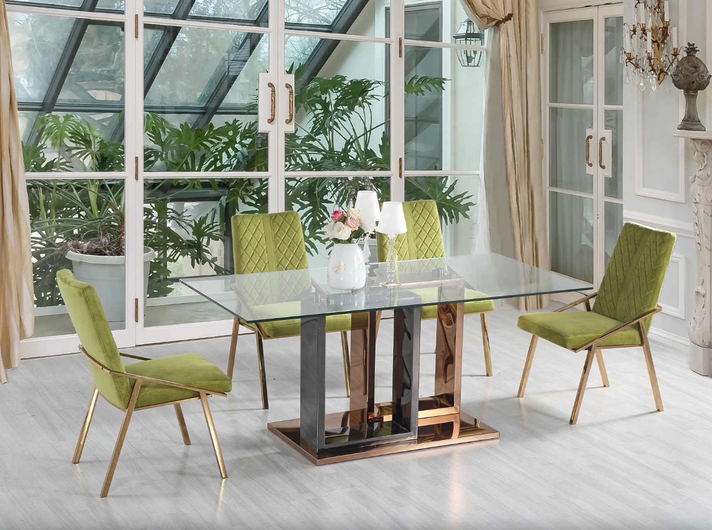 Sklenený jedálenský stôl CARLOS s nerezovým podstavcom. Stôl je veľmi pevný a elegantný s nadčasovým dizajnom. Pevné materiály zabezpečia dlhú životnosť a bezpečné užívanie jedálenského stola.