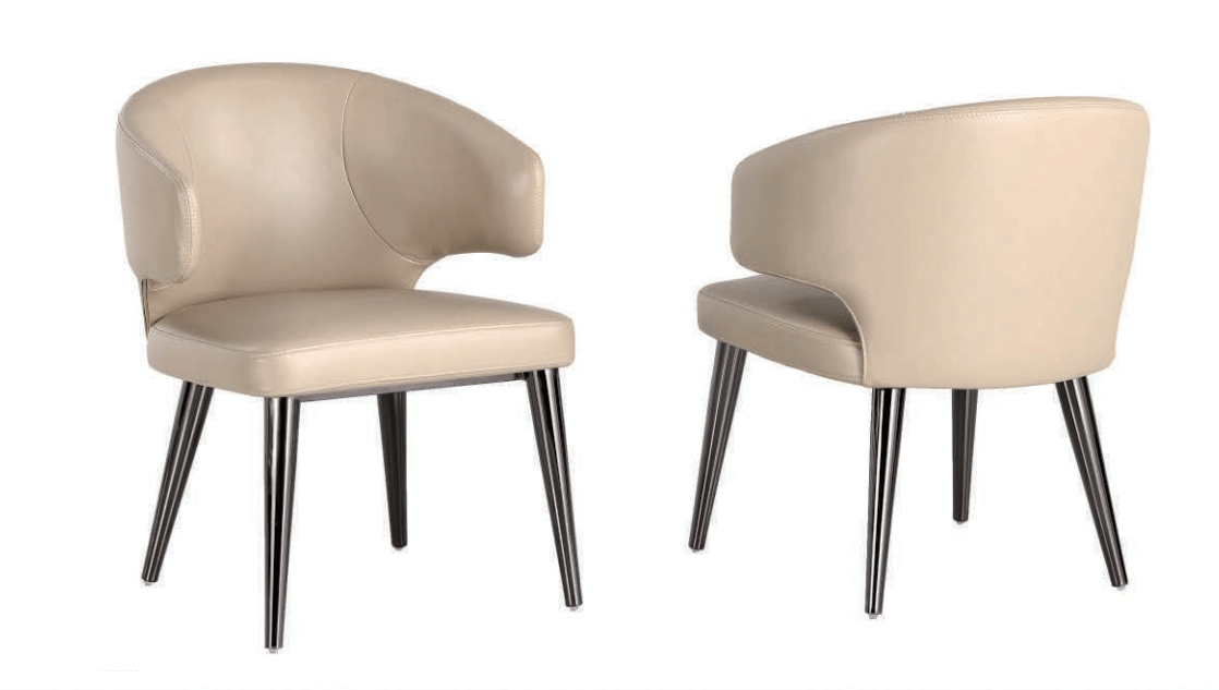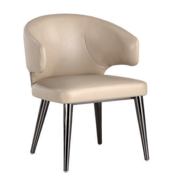 Moderná jedálenská stolička čalúnená látkou, kožou prípadne PU kožou. Stoličky sú pevné, vyrobené z nereze. Pre komfort sedenia sa postará precízne čalúnenie.