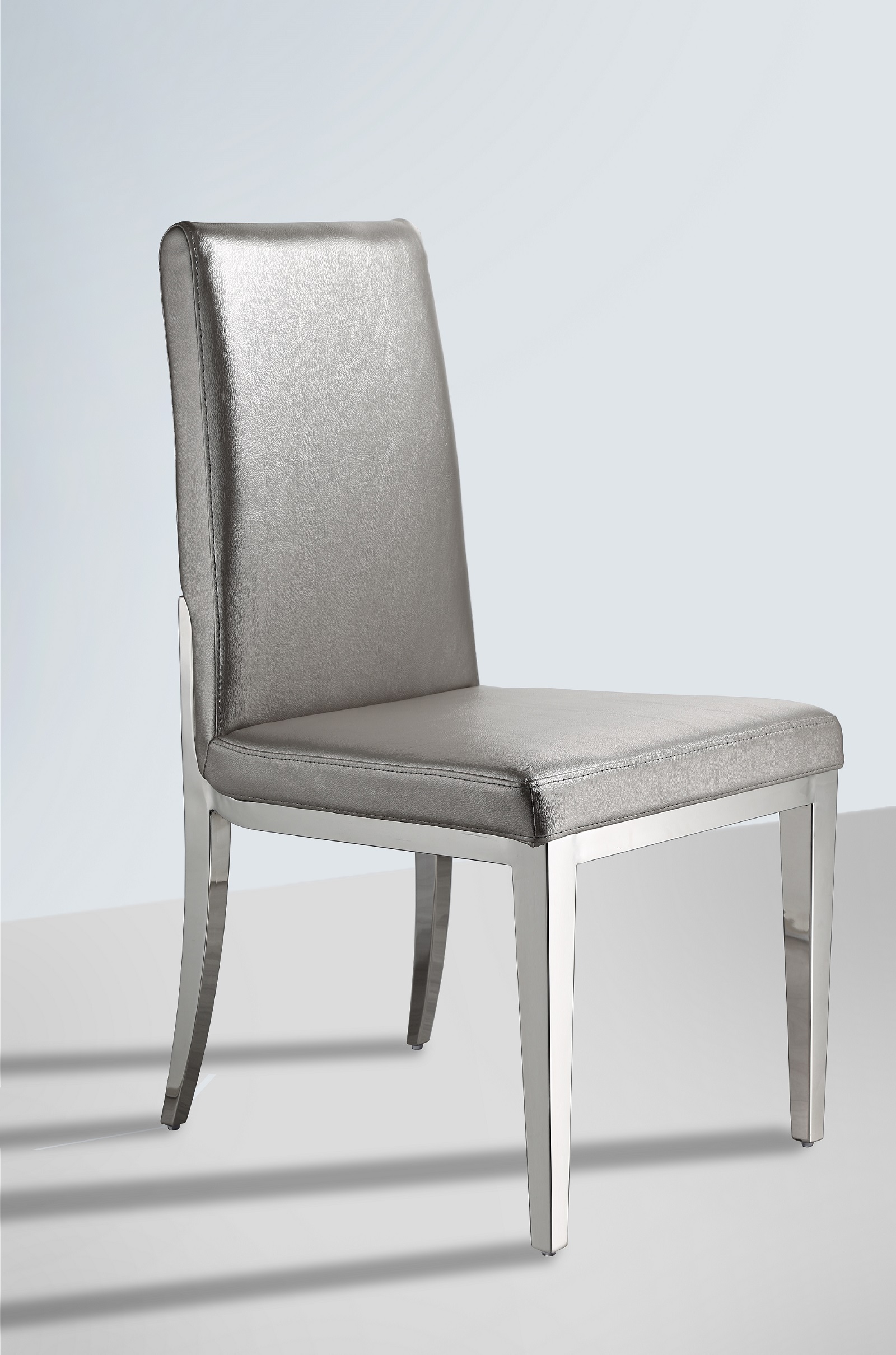 Moderná jedálenská stolička čalúnená látkou, kožou prípadne PU kožou. Stoličky sú pevné, vyrobené z nereze. Pre komfort sedenia sa postará precízne čalúnenie.