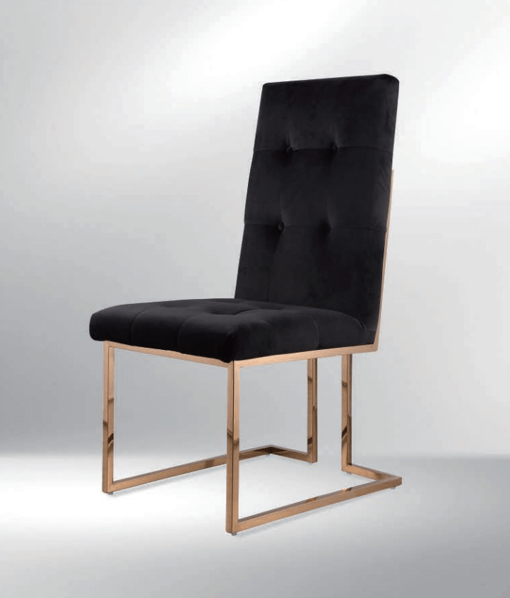 Moderná jedálenská stolička čalúnená látkou, kožou prípadne PU kožou. Stoličky sú pevné, vyrobené z nereze. Pre komfort sedenia sa postará precízne čalúnenie.