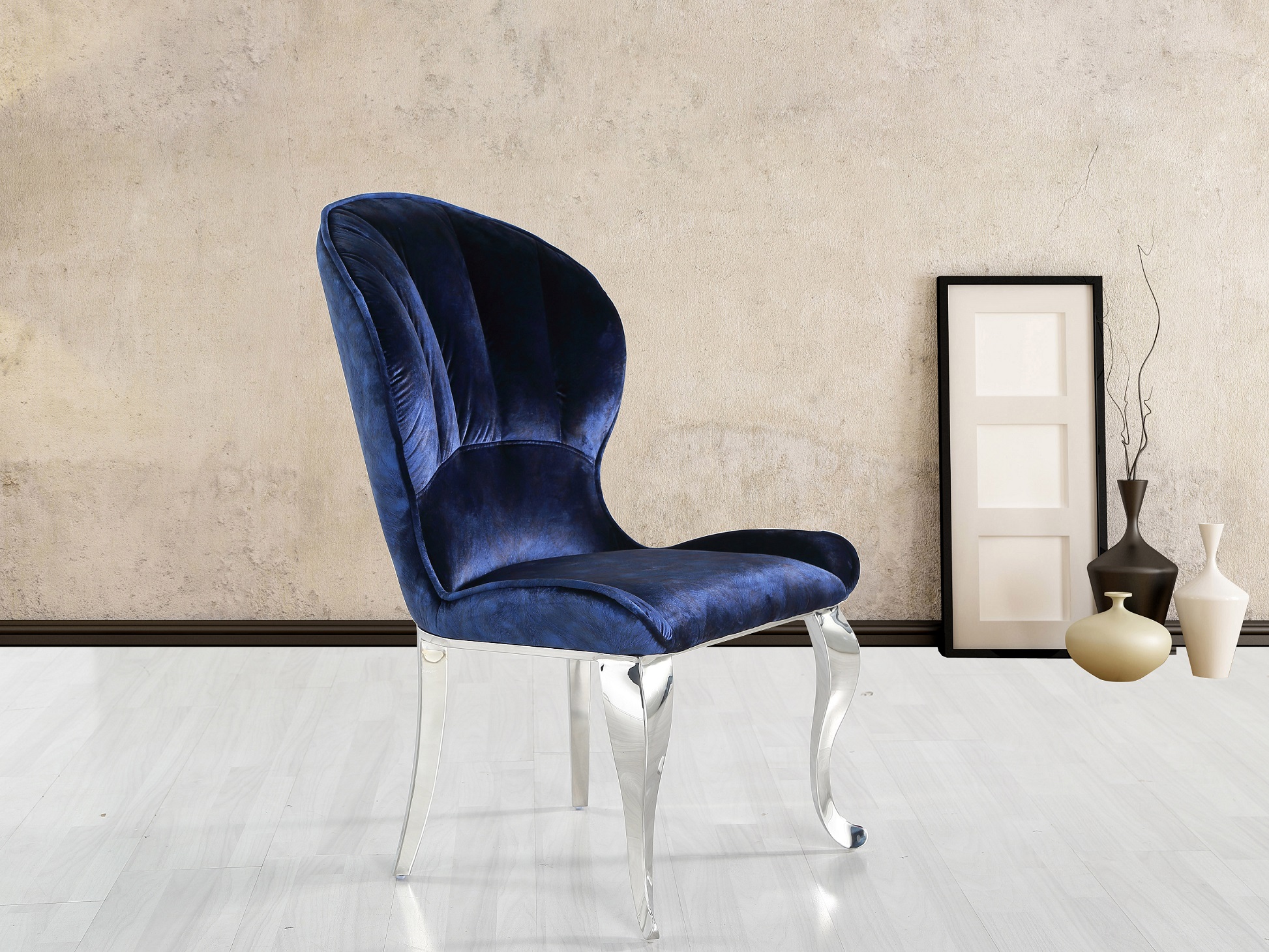 Moderná jedálenská stolička čalúnená látkou, kožou prípadne PU kožou. Stoličky sú pevné, vyrobené z nereze. Pre komfort sedenia sa postará precízne čalúnenie.