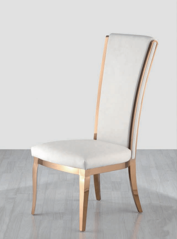 Moderná jedálenská stolička čalúnená látkou, kožou prípadne PU kožou. Stoličky sú pevné, vyrobené z nereze. Pre komfort sedenia sa postará precízne čalúnenie.
