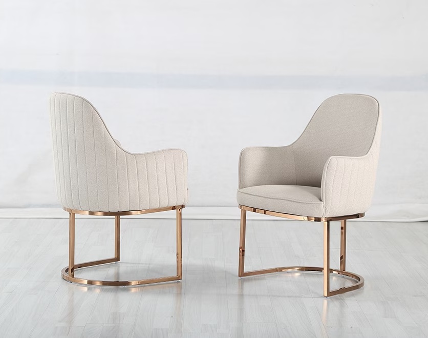 Moderná jedálenská stolička čalúnená látkou, kožou prípadne PU kožou. Stoličky sú pevné, vyrobené z nereze. Pre komfort sedenia sa postará precízne čalúnenie.