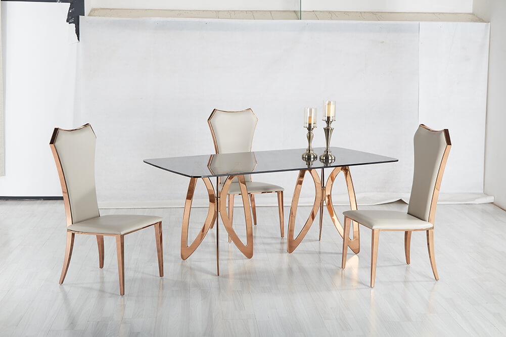 Moderná jedálenská stolička čalúnená látkou, kožou prípadne PU kožou. Stoličky sú pevné, vyrobené z nereze. Pre komfort sedenia sa postará precízne čalúnenie.